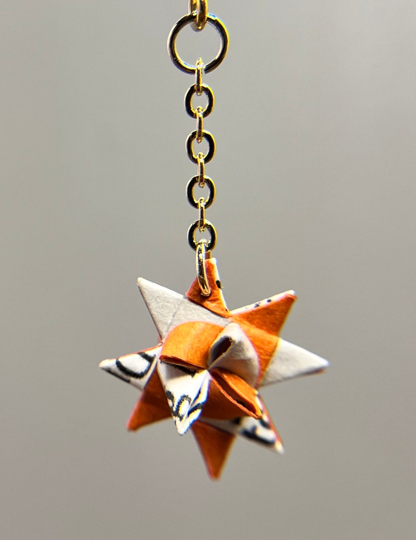 ドイツのフレーベルゆかりの町で折り方を教わり、小さく折ってアクセサリーにしています。