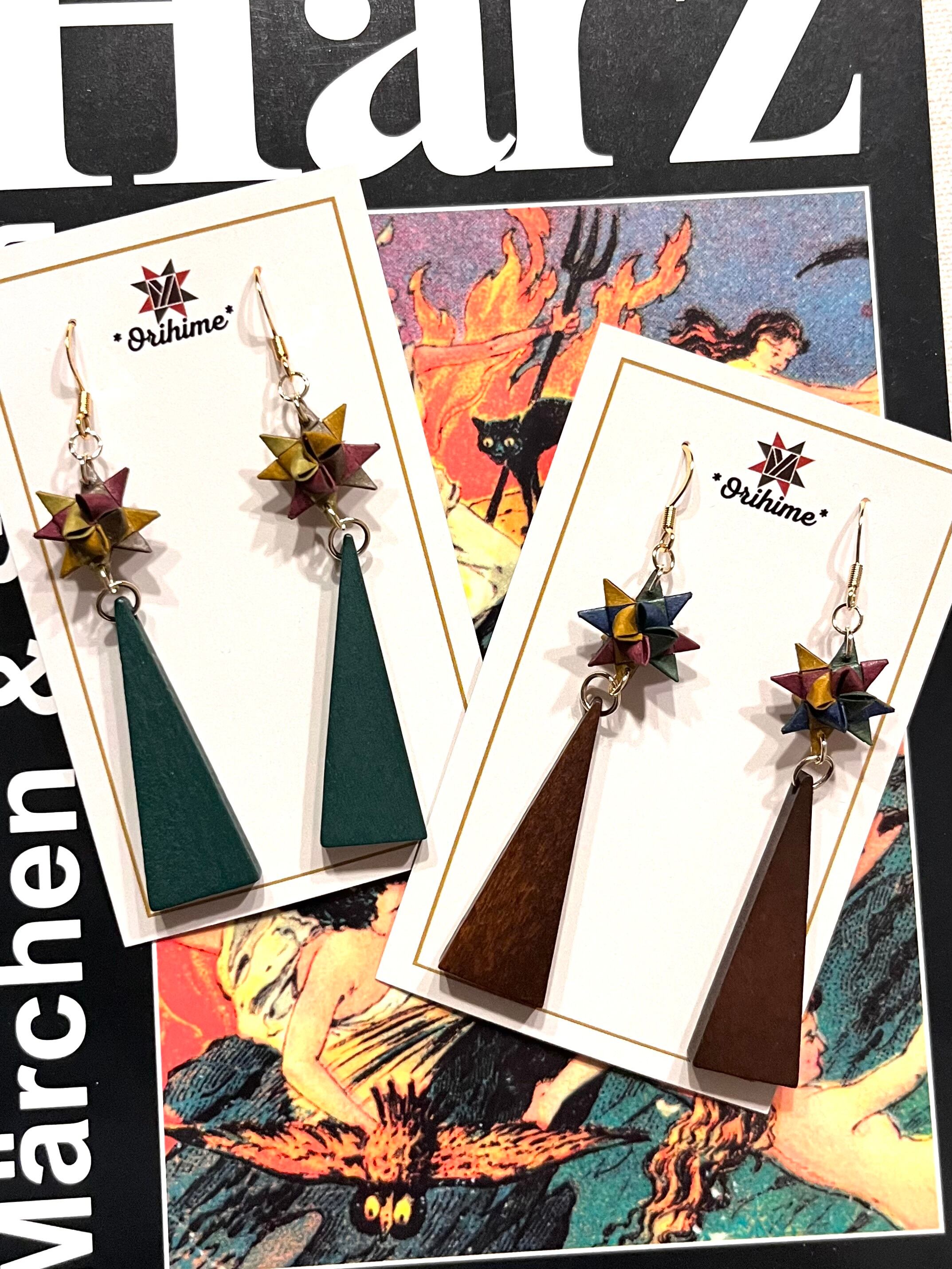 ドイツのフレーベルゆかりの町で折り方を教わり、小さく折ってアクセサリーにしています。