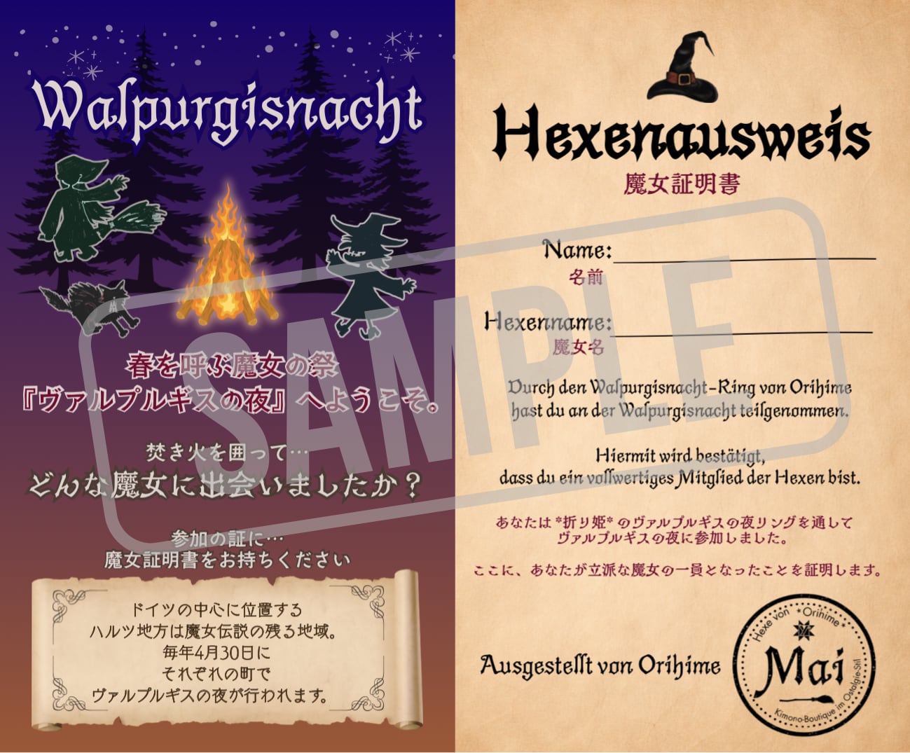 作家Maiがドイツで実際に体験したヴァルプルギスの夜(2014年・2018年)をもとにデザインしています。